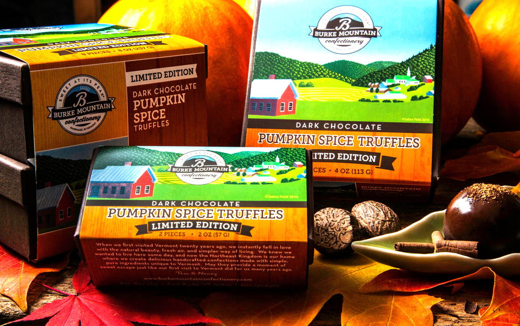 Ya es esa época del año: Canela, clavo, nuez moscada ... todos los suntuosos sabores del otoño envueltos en nuestra trufa de chocolate negro de edición limitada. Un detalle otoñal ideal. Disponible por tiempo limitado en Burke Mountain Confectionery.